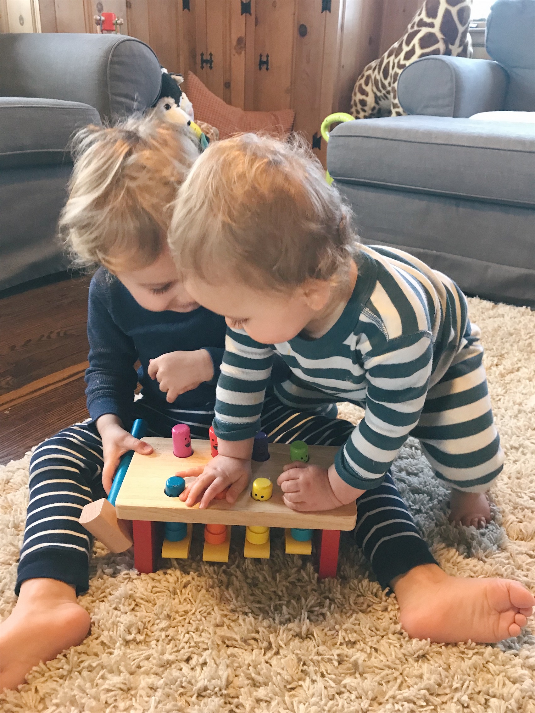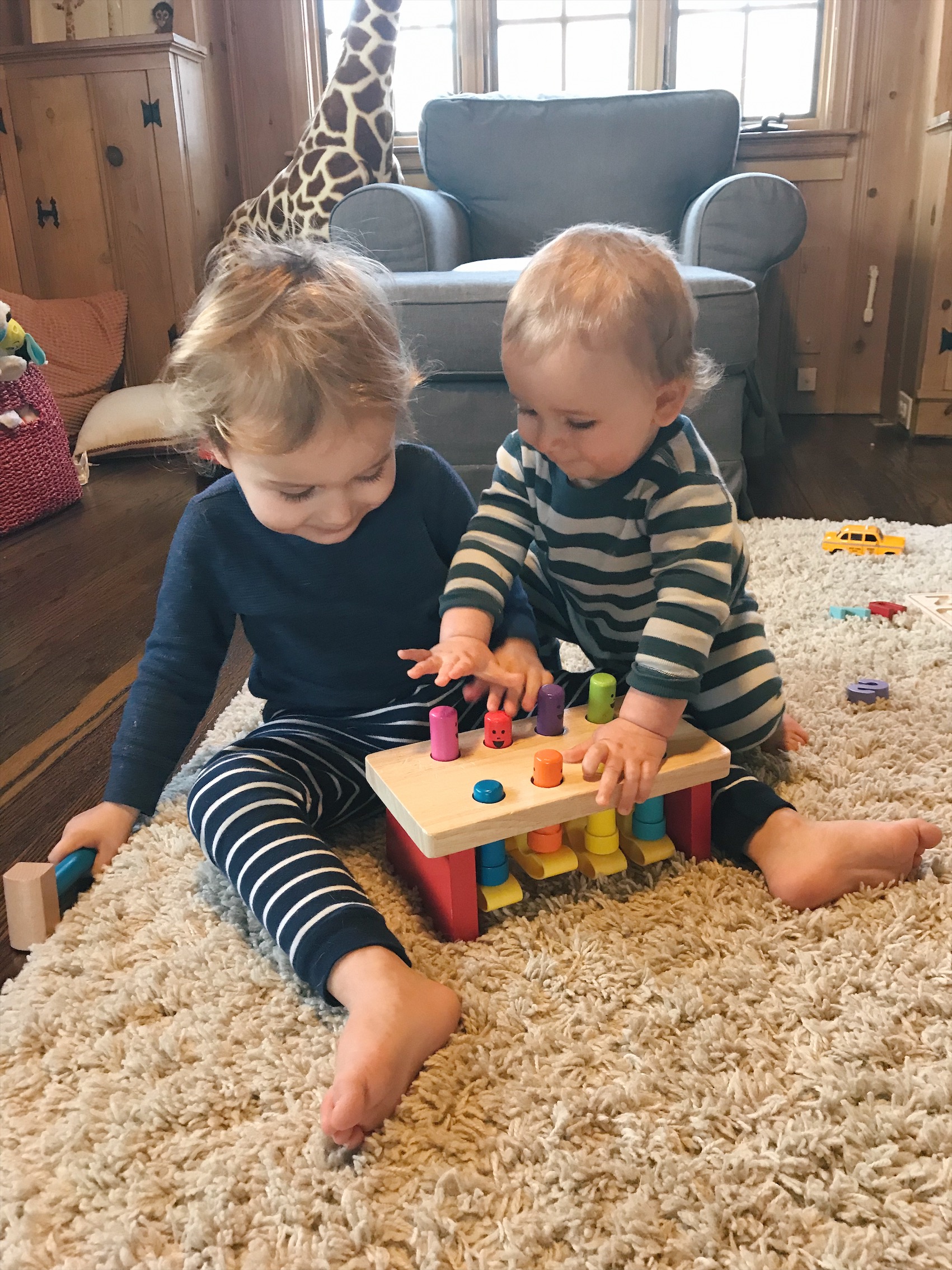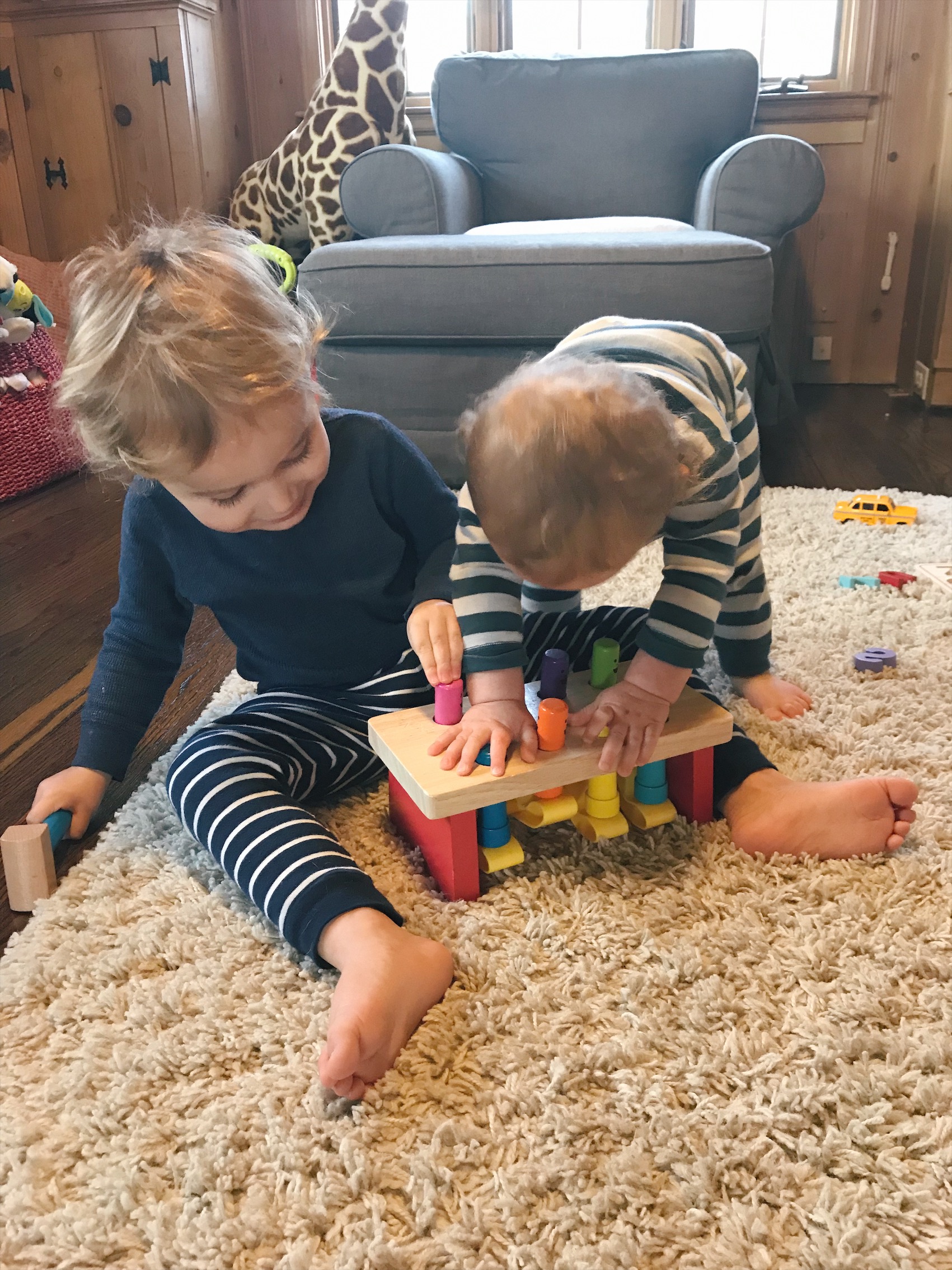 James and Henry have their fair share of plastic and electronic toys. However, there is something so timeless and special about wooden toys. There are so many benefits of wooden toys. They are educational, environmentally friendly, and durable. They’re calming and stimulating and require imagination. It also encourages social interaction. The boys are starting to play together and it’s so cute to watch their bond grow day by day. They go back to these toys time and time again and I know they will last a long time.