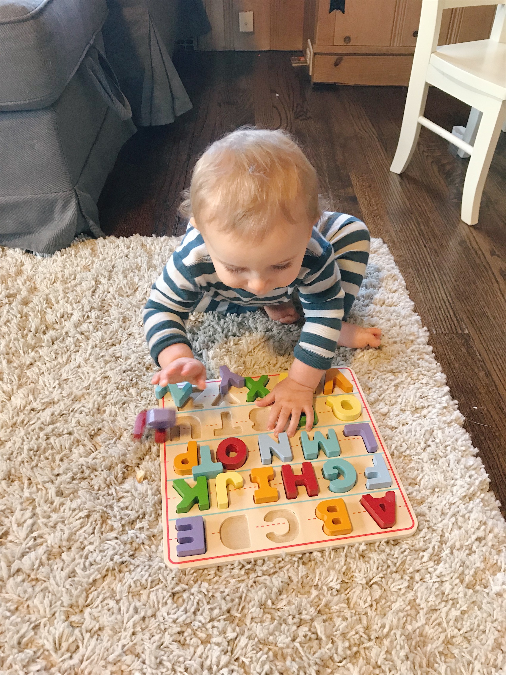 Puzzles – Not only are they a great teether (cue Henry), the boys learn shapes, colors, letters etc.