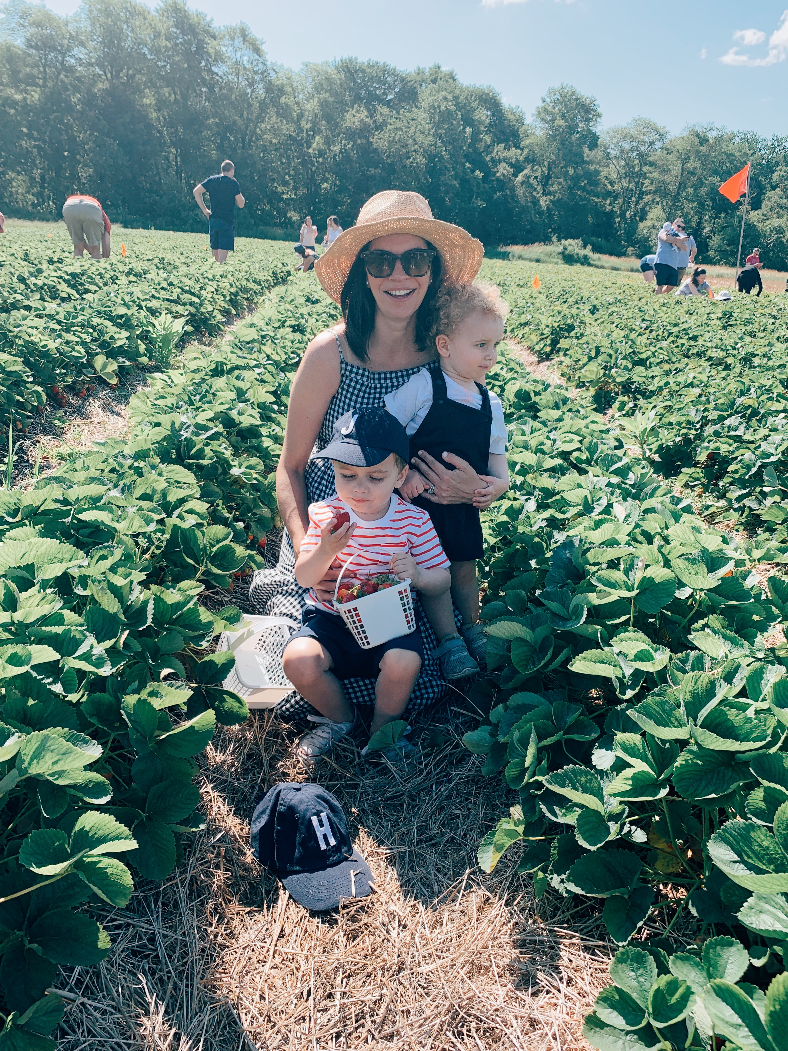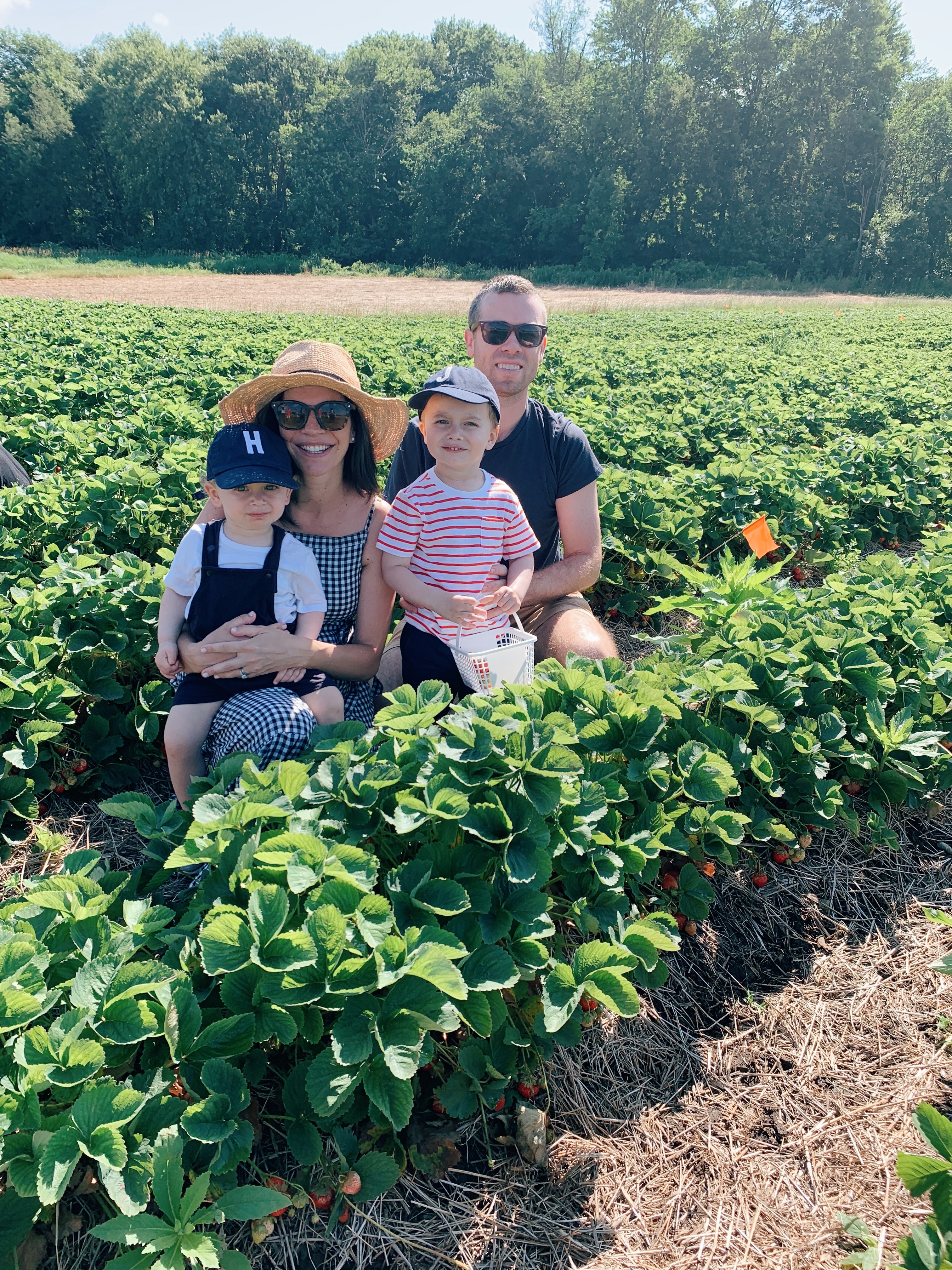 James and Henry both did so well picking (and eating) their own strawberries and we all had so much fun! Once our bellies and baskets were full, we got back on the berry ferry to head back to home base. We left the farm with a basket of freshly picked strawberries that were the most delicious I have ever tasted! If you have an over abundance, you can make jam or even freeze them for later! The total amount of time we spent at the farm was approximately one hour from arrival to departure. It was short and sweet and the perfect little family outing! Up next … blueberry season!