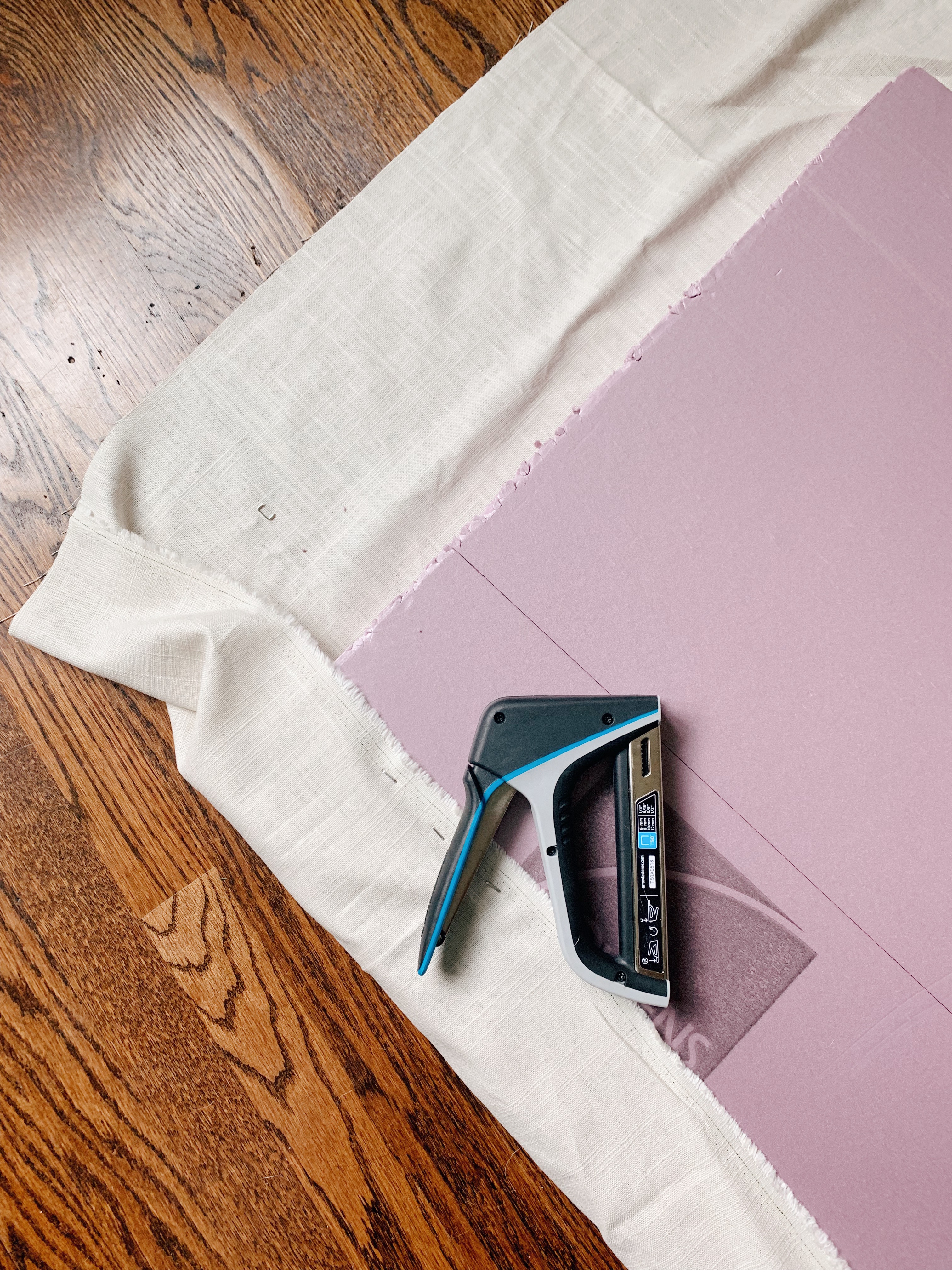 - Fabric (I chose a linen fabric from Jo-Ann’s Fabric for about $15. I had them cut it to 54″ x 42″ and it ended up being a little big so I just cut it accordingly).