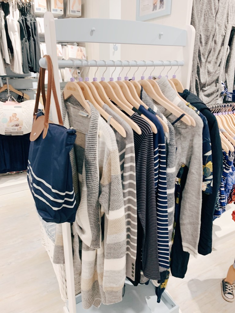 When I visited the store, new fall arrivals just hit the floor. From sweaters to nursing-friendly tops to dresses, I was so excited to try everything on. All the pieces are high quality, super comfortable and, best yet, classic. Just what this mama needs and loves! Most pieces can be worn before, during and after pregnancy. One of my favorites was the 2-in-1 parka which is all-weather resistant, cozy and warm, and can be worn pregnant, carrying a baby and easily unzip the patch to wear post-partum!