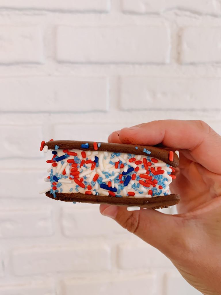 Pour your sprinkle mixture on a plate and roll sandwich for sprinkles to stick.